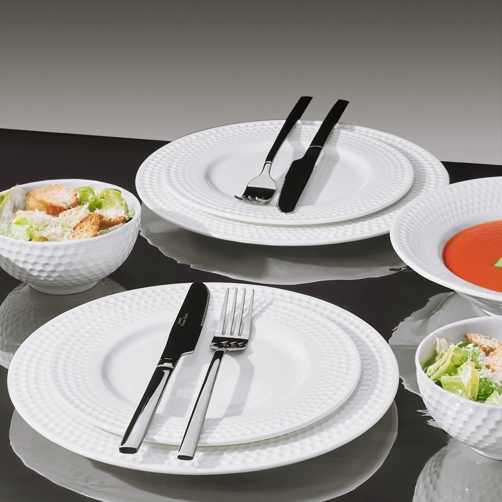 NOEMI — это уникальное сочетание роскоши и практичности. Каждое изделие коллекции выполнено из премиального костяного фарфора, который славится своей прочностью, сияющей белизной и безупречной текстурой. Этот материал не только подчеркивает элегантность каждого предмета, но и обеспечивает его долговечность, делая его идеальным выбором для повседневного использования.