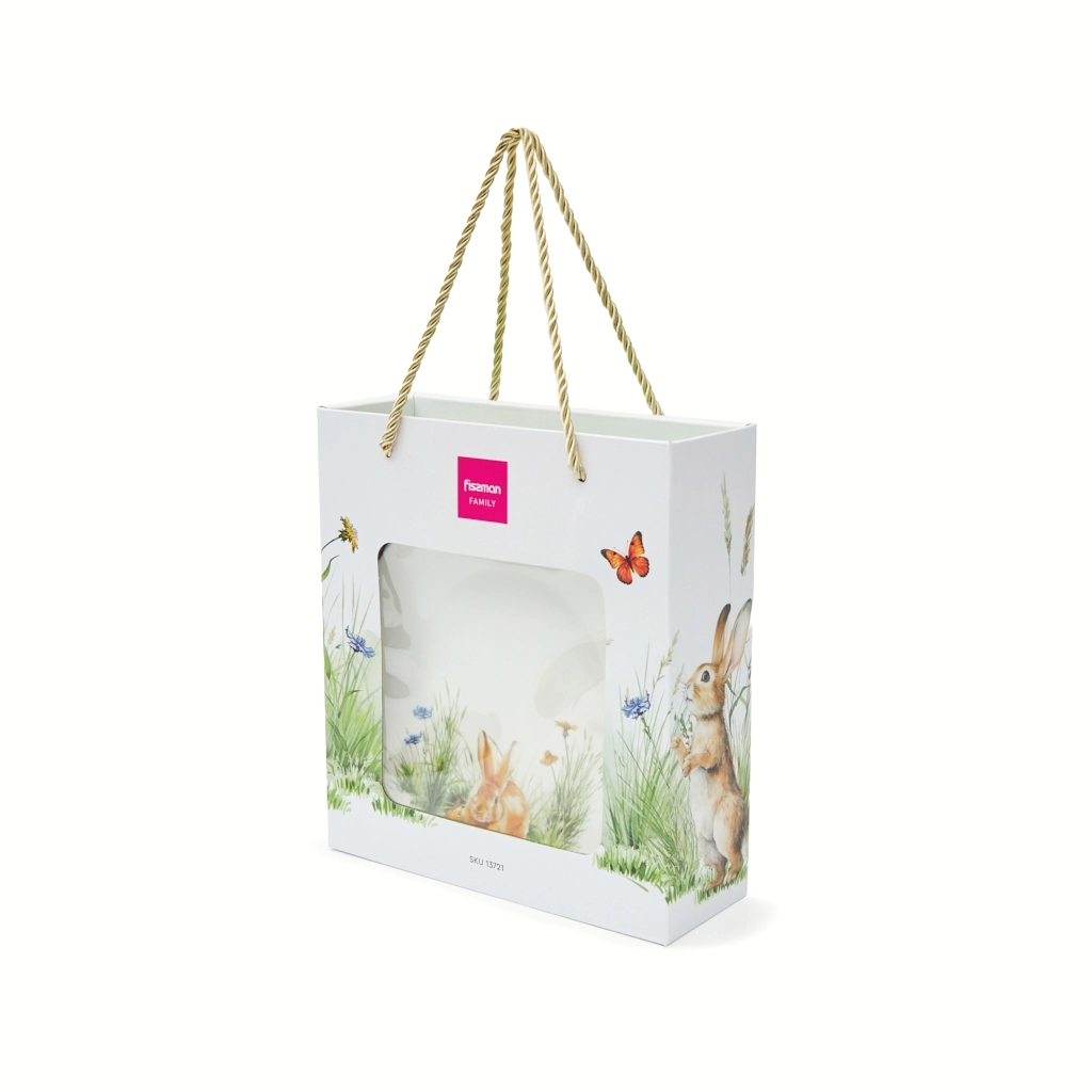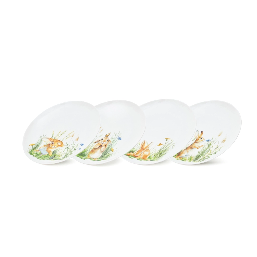 Ищете подарок, который не просто красивый, а по-настоящему душевный? Набор из 4 фарфоровых тарелок “Rabbit” от FISSMAN — это нежность, уют и весёлое настроение за столом. Каждая тарелка украшена уникальным сюжетом с кроликами: милые герои играют, отдыхают и создают вокруг атмосферу радости.