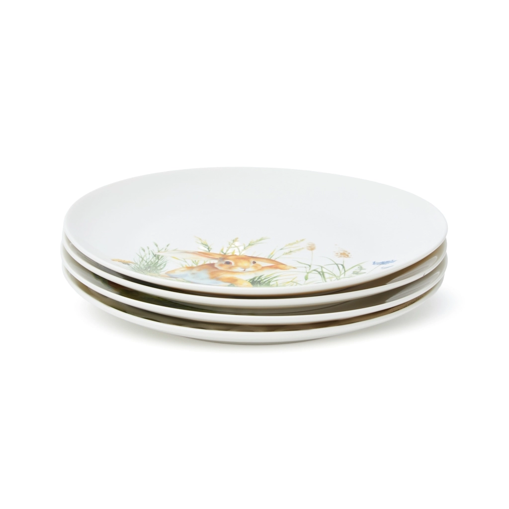 Идеально подойдёт: https://fissman.ru/catalog/servirovka-stola/tarelki/nabory-tarelok/nabor-tarelok-iz-farfora-4-sht-20-sm-rabbit/