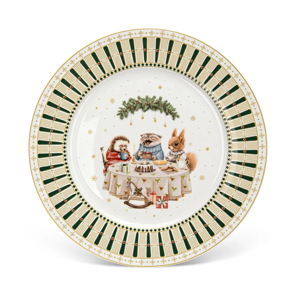 Как специалист по сервировке отмечу: здесь удачно подобраны толщина стенок и масса - тарелка ощущается лёгкой, но не «звончит» и не перегревается локально. Глазурь ровная, без «апельсиновой корки», деколь пропечена чётко - контур иллюстрации чистый даже в мелких деталях. Для подарочного сервиса в зимнем стиле - один из самых удачных вариантов в своей цене.