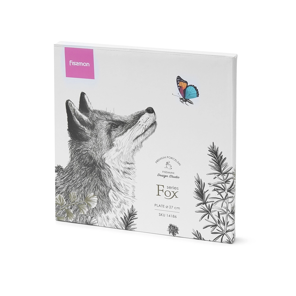 Серия фарфора FOX — это воплощение изысканности и уникальности. Талантливые художники компании FISSMAN создали дизайн, который передаёт всю красоту и гармонию природы. На фарфоре изображена лиса, весело играющая с бабочкой на фоне высокой травы. Золотые линии, окружающие композицию, придают ей особую элегантность и изящество. https://fissman.ru/catalog/servirovka-stola/tarelki/tarelki-bolshie/tarelka-farforovaya-27-sm-fox/