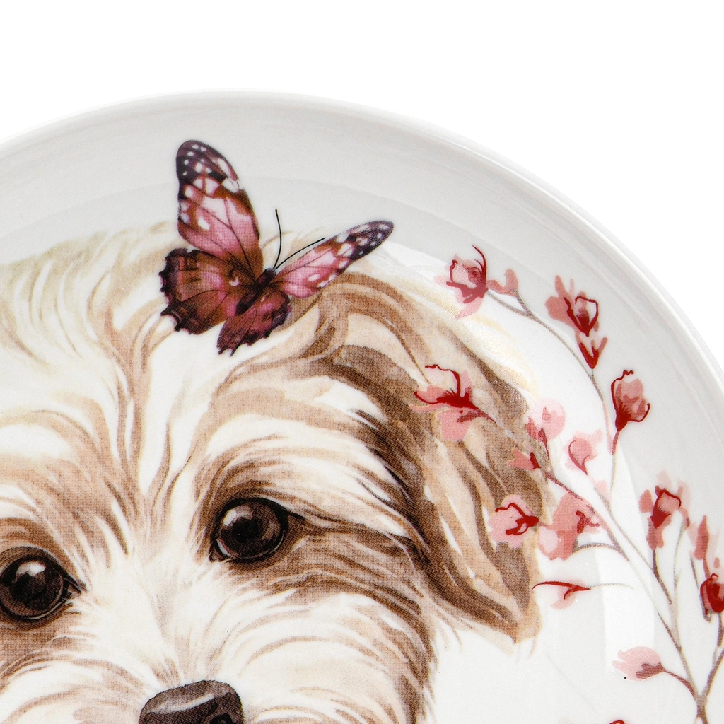 Фарфоровая тарелка 14,5 см «Dogs» - не просто изображение собаки. Это портрет хаванеза: с доброжелательным взглядом, пушистыми ушками и нежной шерсткой, будто только что проснувшейся от дремы. А на его ухе - бабочка, прилетевшая, чтобы подарить вам хорошее настроение. Вокруг - нежные цветы, созданные, чтобы подчеркнуть его природную красоту и нежность. Это не просто украшение. Это ваше личное пространство для завтрака, обеда или просто для того, чтобы остановиться и улыбнуться.
