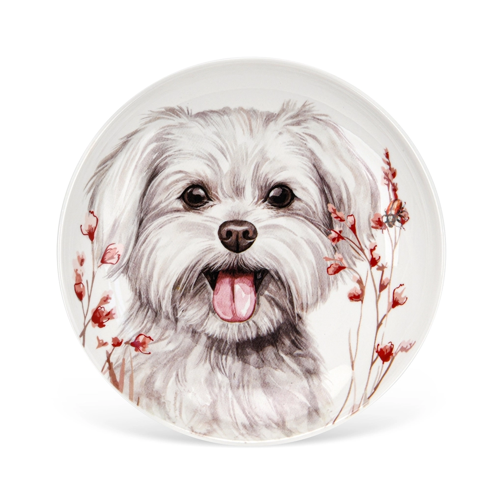 Фарфоровая тарелка «Dogs» диаметром 14,5 см представляет собой миниатюрное произведение искусства. На ней изображён хаванез - порода собак, известная своим дружелюбным характером. Взгляд собаки направлен на зрителя, уши стоят торчком, а язык слегка высунут от радости. Фарфоровая тарелка станет прекрасным украшением вашего стола и идеальным подарком для любителей собак.