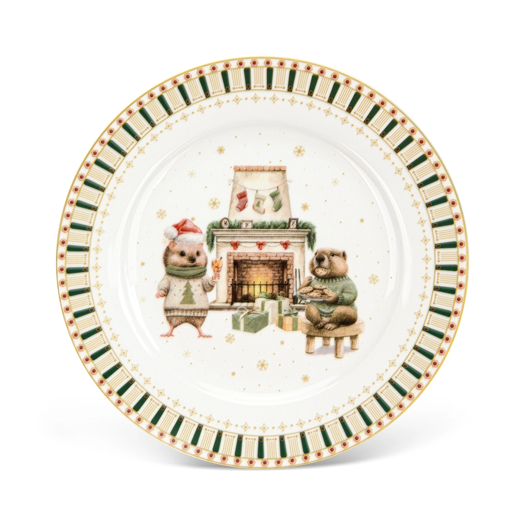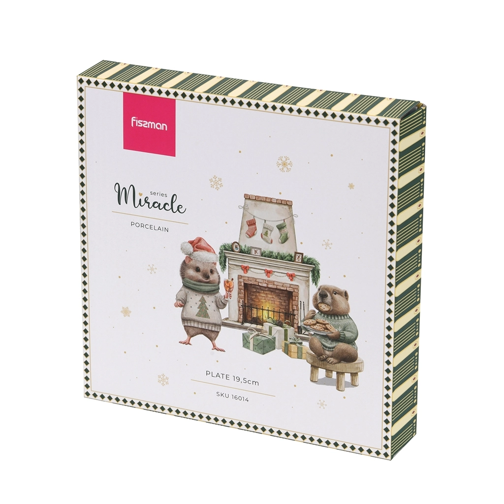 Тарелка из коллекции MIRACLE ART - это не только функциональный предмет сервировки, но и праздничный акцент, который создаёт настроение. Диаметр 19,5 см делает её универсальной для подачи закусок, салатов или десертов, а новогодний сюжет у камина превращает каждую трапезу в атмосферное событие.