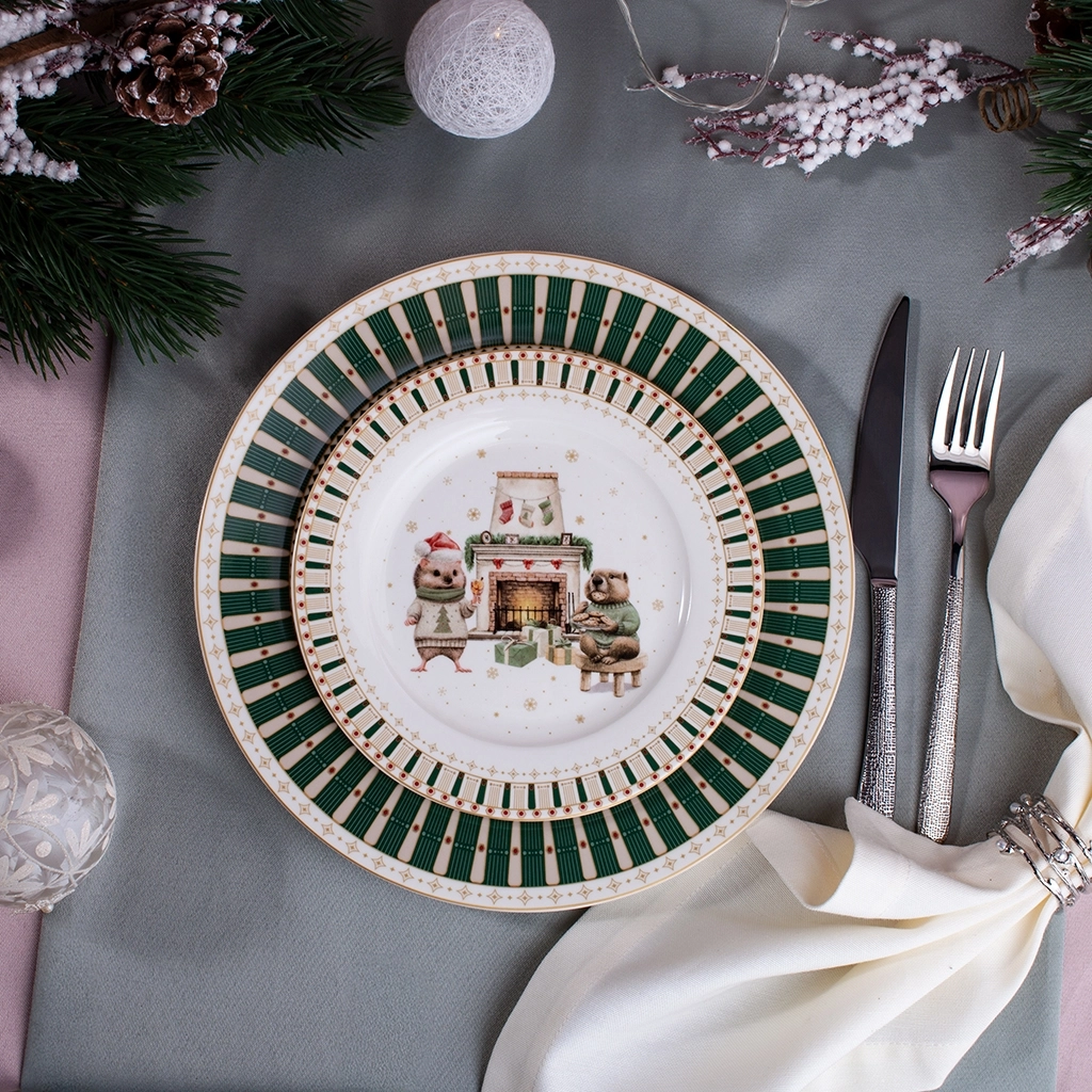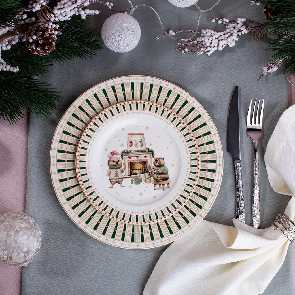 Как специалист по сервировке отмечу: у тарелок FISSMAN коллекции MIRACLE ART безупречная геометрия и идеально ровный кант. На фото видно, что рисунок под глазурью - это защита от истирания и выцветания. Такая посуда сохраняет праздничный вид даже после десятков циклов использования. Эта тарелка особенно удачна для зимних ужинов: создаёт ощущение уюта, словно за семейным камином.