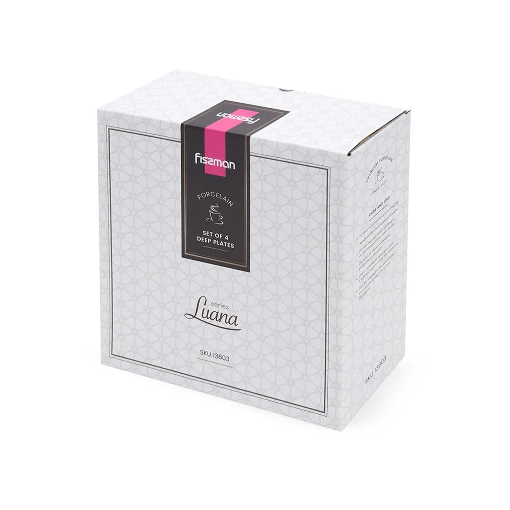 Хотите, чтобы каждый семейный обед или ужин выглядел по-настоящему стильно? Набор из 4 глубоких тарелок LUANA 20,5 см от бренда FISSMAN - это идеальное сочетание изысканного дизайна, практичности и высокого качества. Изготовленные из тонкого полупрозрачного фарфора, эти тарелки станут достойным украшением любого стола - будь то повседневный ужин или праздничное застолье.