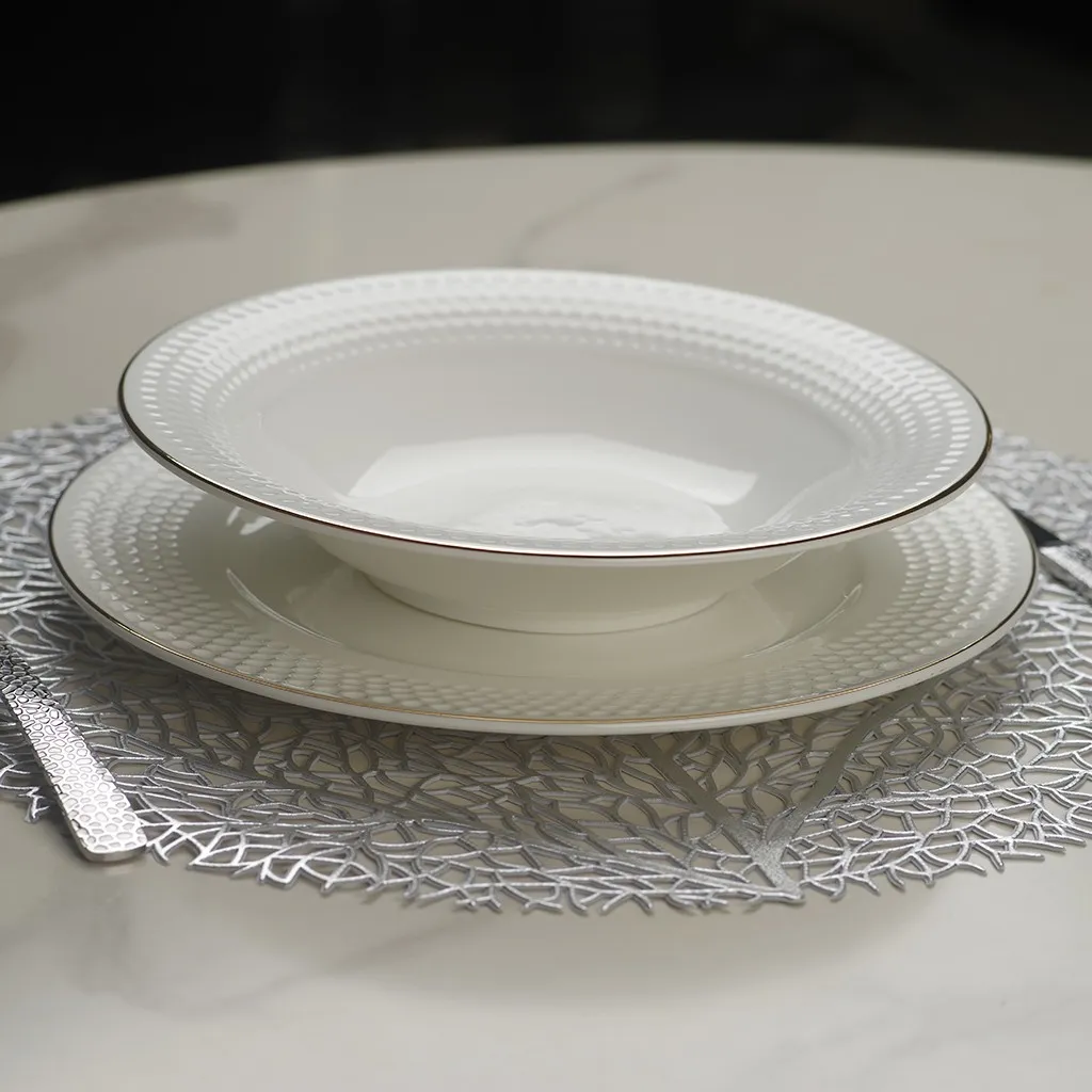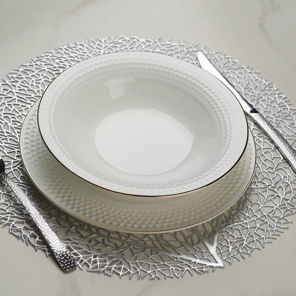 Компания Fissman представляет коллекцию посуды NOEMI из настоящего китайского костяного фарфора. Предметы выполнены в классическом стиле, в белоснежном цвете с золотой окантовкой и украшены геометрическим узором. Первозданный белый цвет подчеркивает красоту форм, он подойдет для любого интерьера, стиля сервировки и повода. Глазурованная поверхность эффектно смотрится, отличается https://fissman.ru/catalog/servirovka-stola/tarelki/tarelki-glubokie/tarelki-glubokie-21-5-sm-2-sht-kostyanoy-farfor-noemi-art-13940/ высокой прочностью и долговечностью. На ней отсутствуют вкрапления и поры. Предметы легко моются, не впитывают запахи и загрязнения. Каждый из них упакован в красочную коробку и будет отличным подарком. В серию входят: заварочный чайник, сливочник, сахарница, чайные пары, наборы плоских и глубоких тарелок. Посуду не рекомендуется ставить в микроволновую печь или мыть в посудомоечной машине.