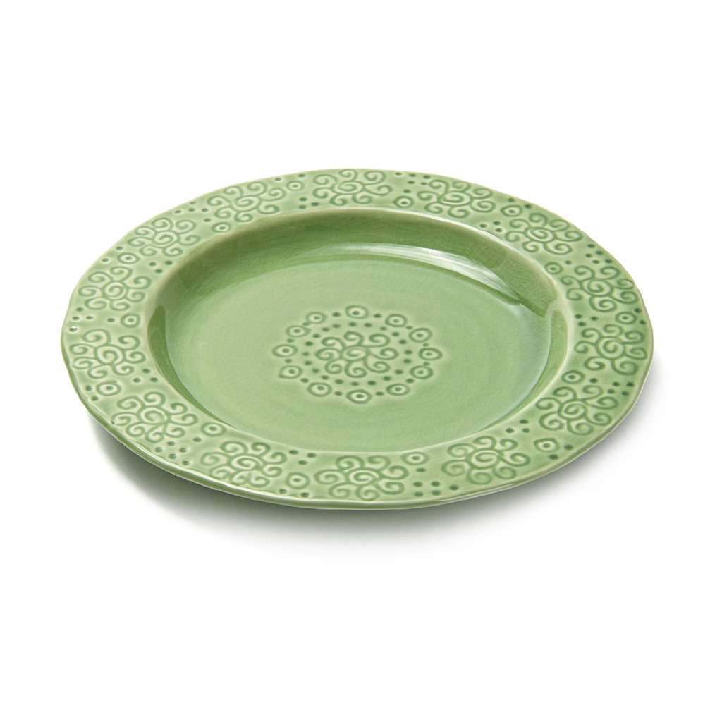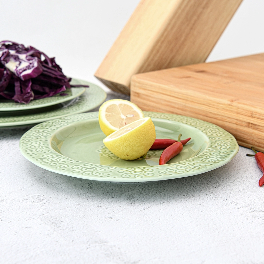 Тарелка изготовлена по методу литья под давлением в гипсовых формах с последующим обжигом при 1280°C - это на 150°C выше industry standard. Двойной обжиг обеспечивает плотность черепка 2,4 г/см³ - на 20% плотнее обычной керамики.