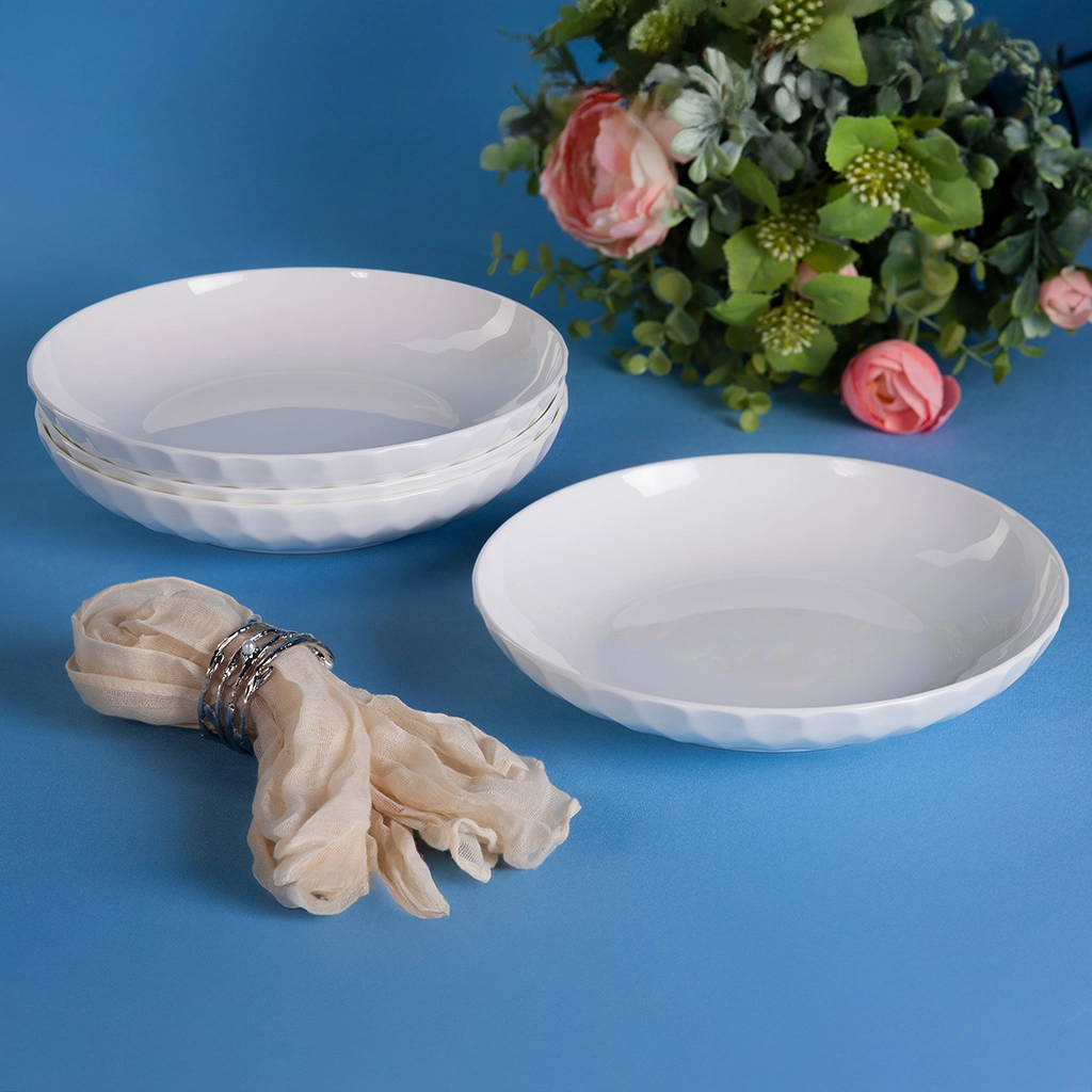 Хотите, чтобы каждый семейный обед или ужин выглядел по-настоящему стильно? Набор из 4 глубоких тарелок LUANA 20,5 см от бренда FISSMAN - это идеальное сочетание изысканного дизайна, практичности и высокого качества. Изготовленные из тонкого полупрозрачного фарфора, эти тарелки станут достойным украшением любого стола - будь то повседневный ужин или праздничное застолье.