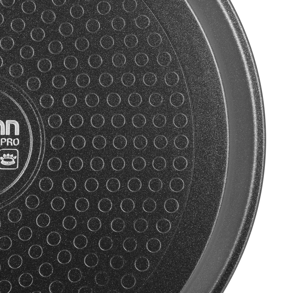Одно из ключевых преимуществ Cook Pro — способность выдерживать нагрев до 300 градусов, что позволяет использовать сковороду на газовых и электрических плитах. Толстый и тяжёлый литой алюминий обеспечивает прочность, устойчивость к деформации и помогает сохранять тепло внутри сковороды.