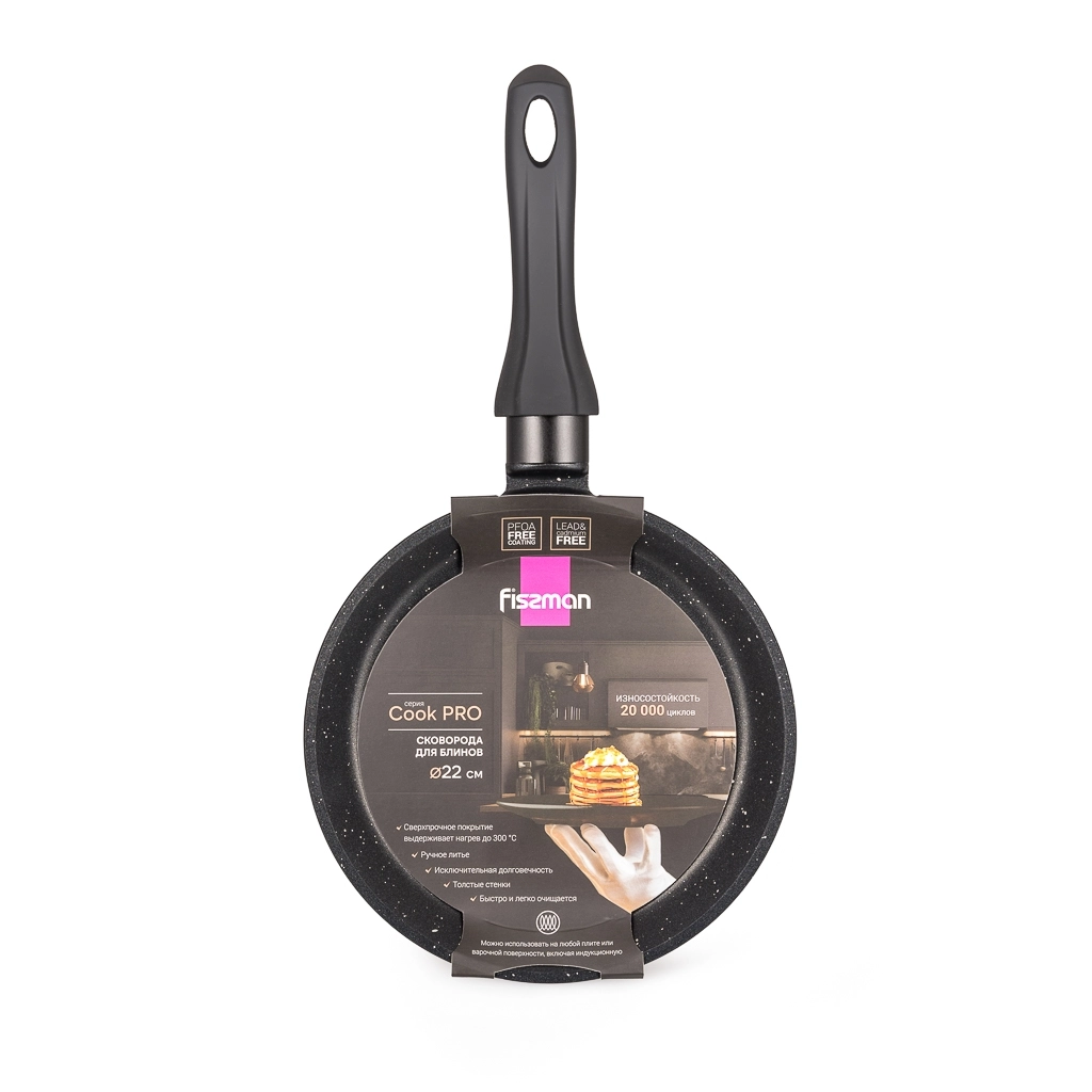 Блинная сковорода Cook Pro — идеальный выбор для вашей кухни! Она изготовлена из литого алюминия, который обеспечивает равномерное распределение тепла и быстрое приготовление блинов. Высококачественное антипригарное покрытие с высокой износостойкостью (20 000 циклов) гарантирует долговечность и надёжность сковороды.