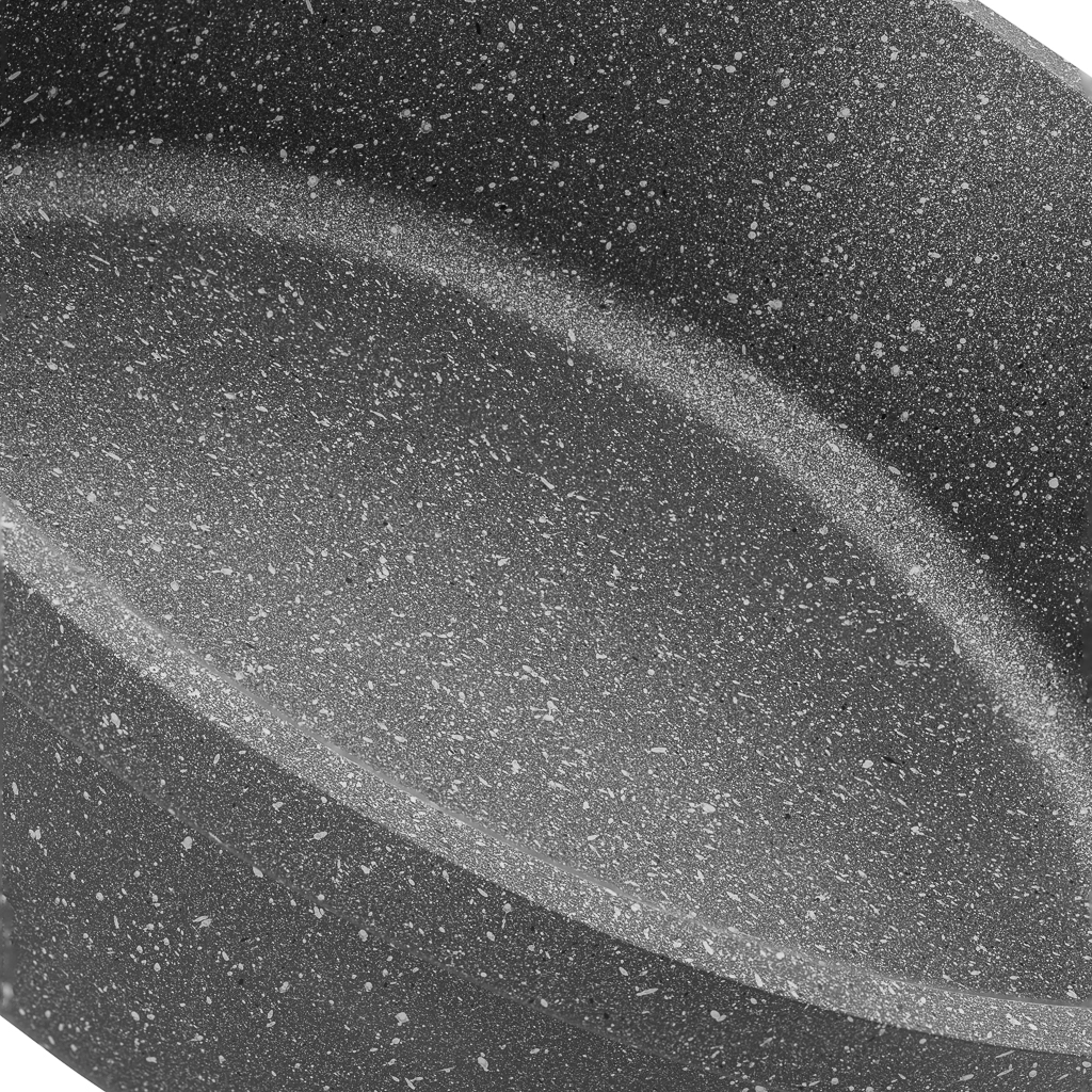 Одно из главных преимуществ UNIQUE PRO — способность выдерживать нагрев до 300 градусов. Утолщенный и тяжёлый литой алюминий обеспечивает прочность, устойчивость к деформации и помогает сохранять тепло внутри сковороды.