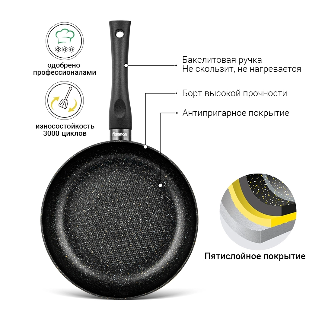 Почему стоит купить? Глубокая сковорода PROMO 24 см станет вашим надёжным помощником для повседневных блюд. Она лёгкая, удобная, долговечная и создана для тех, кто ценит практичность и разумный подход к выбору посуды.