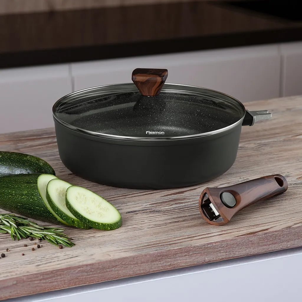 Глубокая сковорода CAPELLA 28 см со съёмной ручкой – это не просто кухонная посуда, а настоящий инструмент для кулинарного вдохновения. Благодаря литому алюминию она нагревается быстро и распределяет тепло равномерно, что позволяет готовить вкусные и полезные блюда без пригорания. Сковорода создана для тех, кто ценит удобство и любит экспериментировать на кухне.