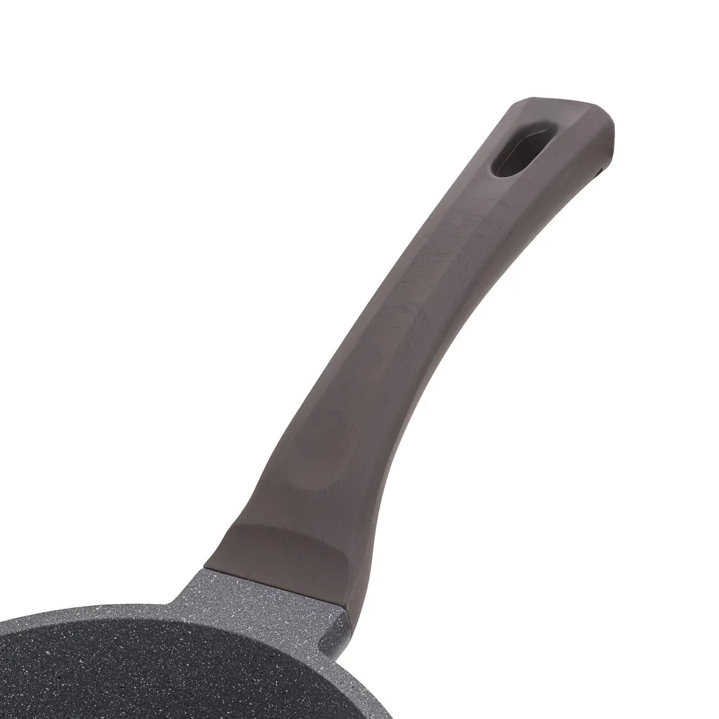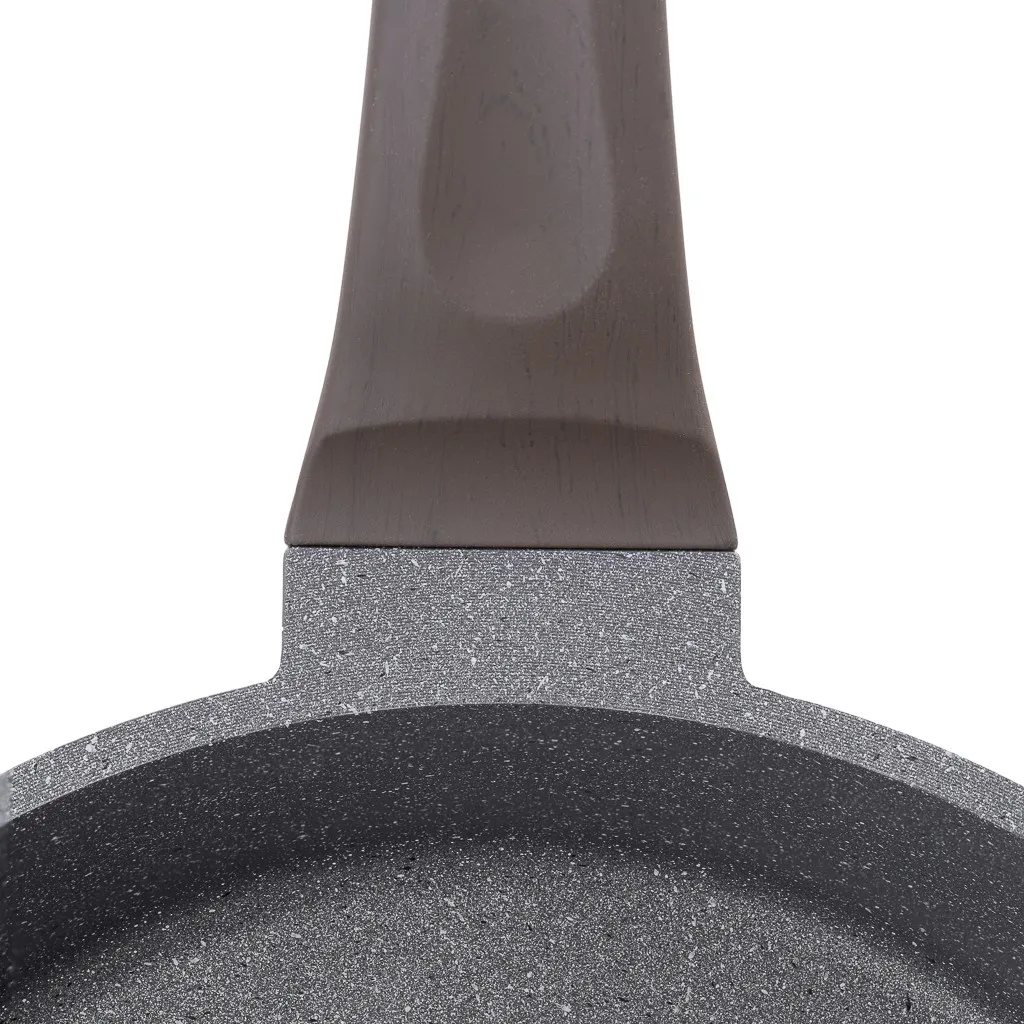 Ручки выполнены под дерево с мягким покрытием soft-touch, что обеспечивает удобство использования, приятные тактильные ощущения, предотвращает скольжение и нагрев. В комплект входит крышка, что делает использование ещё более удобным.