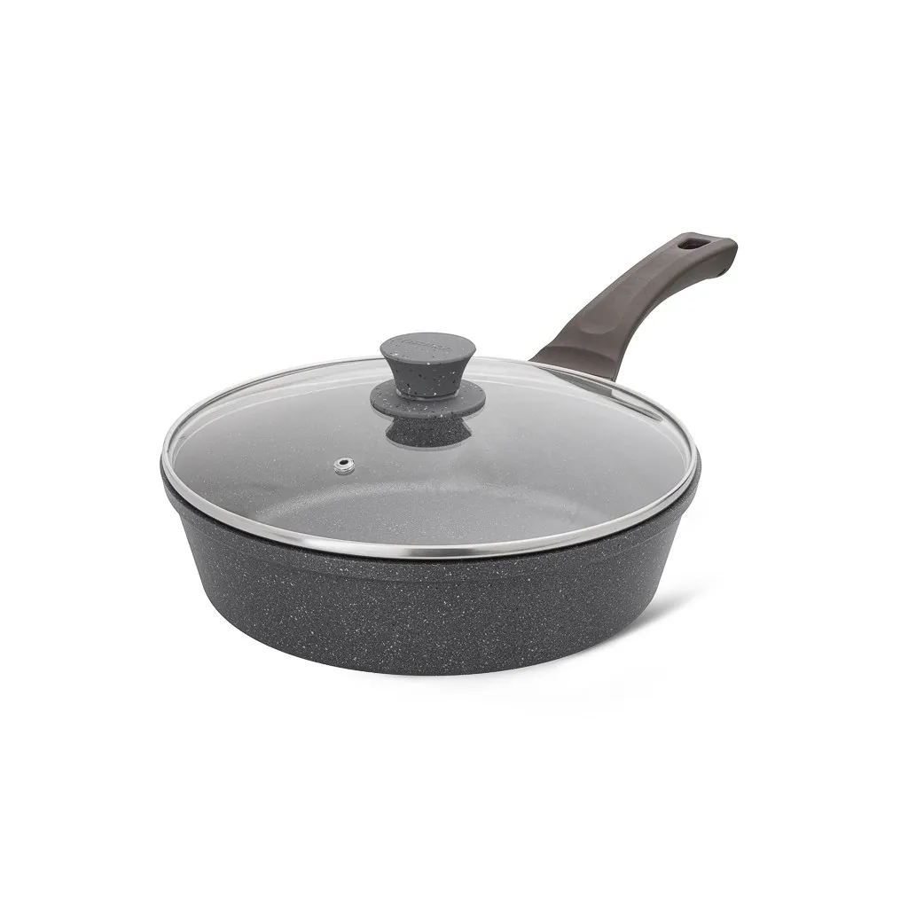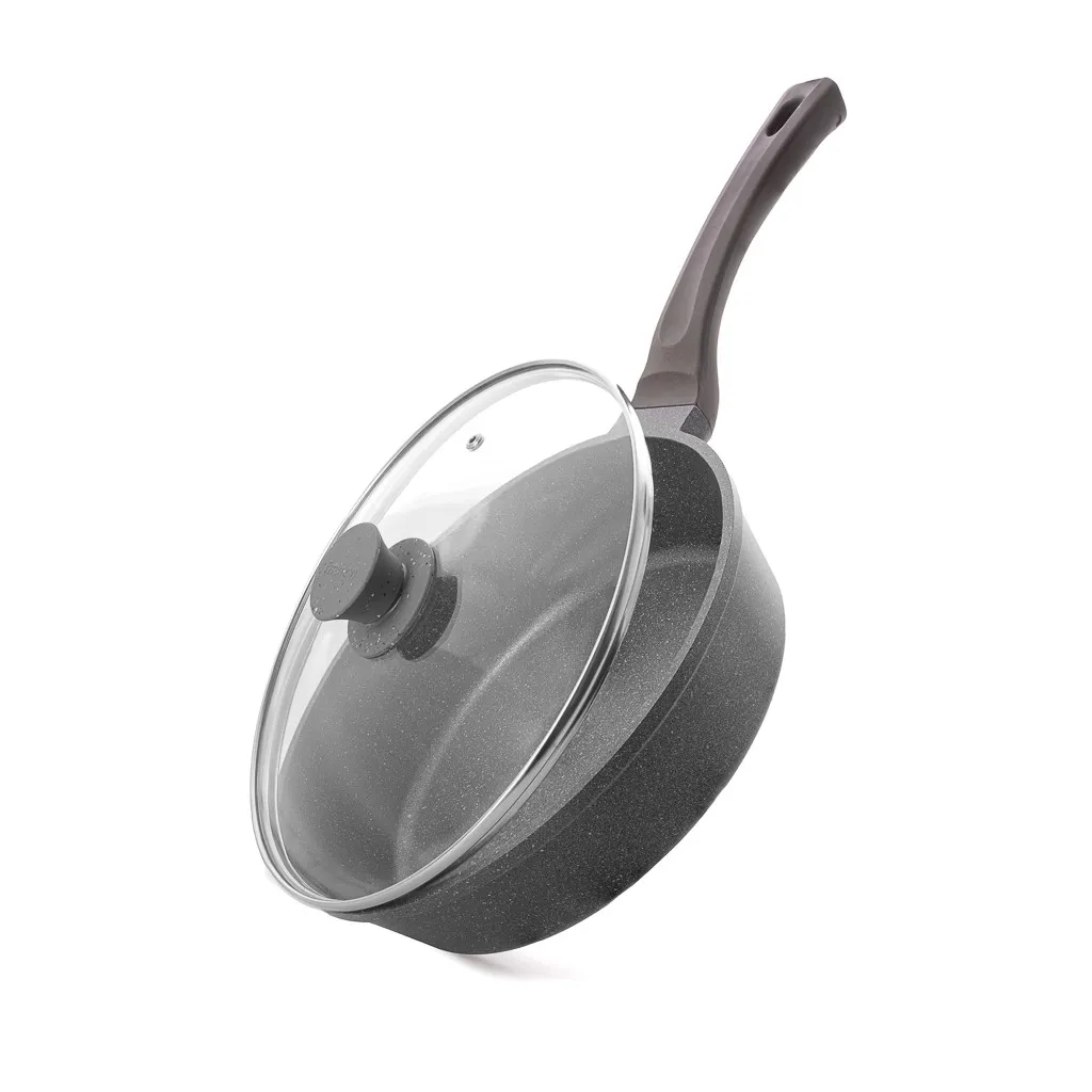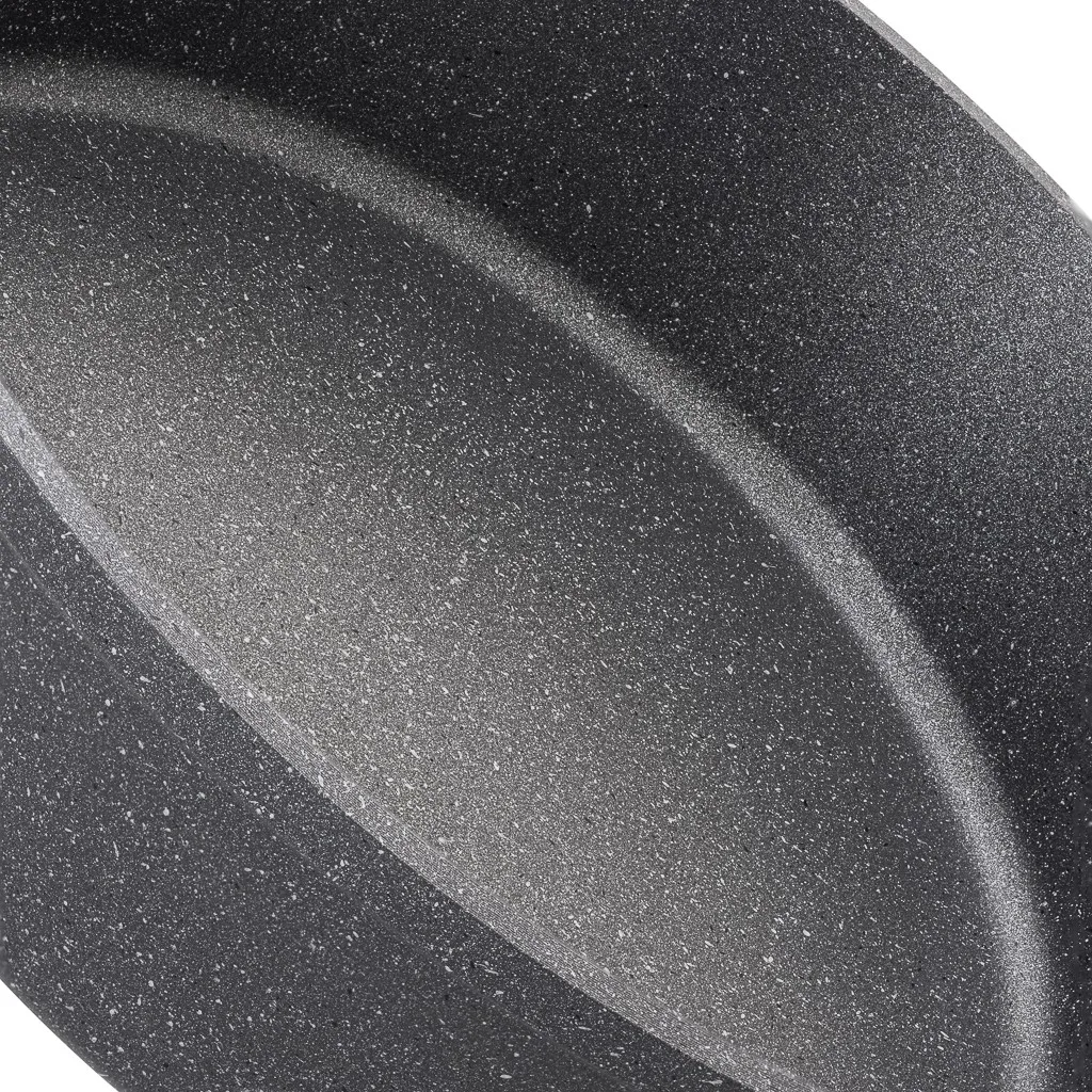 Одно из главных преимуществ UNIQUE PRO — способность выдерживать нагрев до 300 градусов. Утолщенный и тяжёлый литой алюминий обеспечивает прочность, устойчивость к деформации и помогает сохранять тепло внутри сковороды.