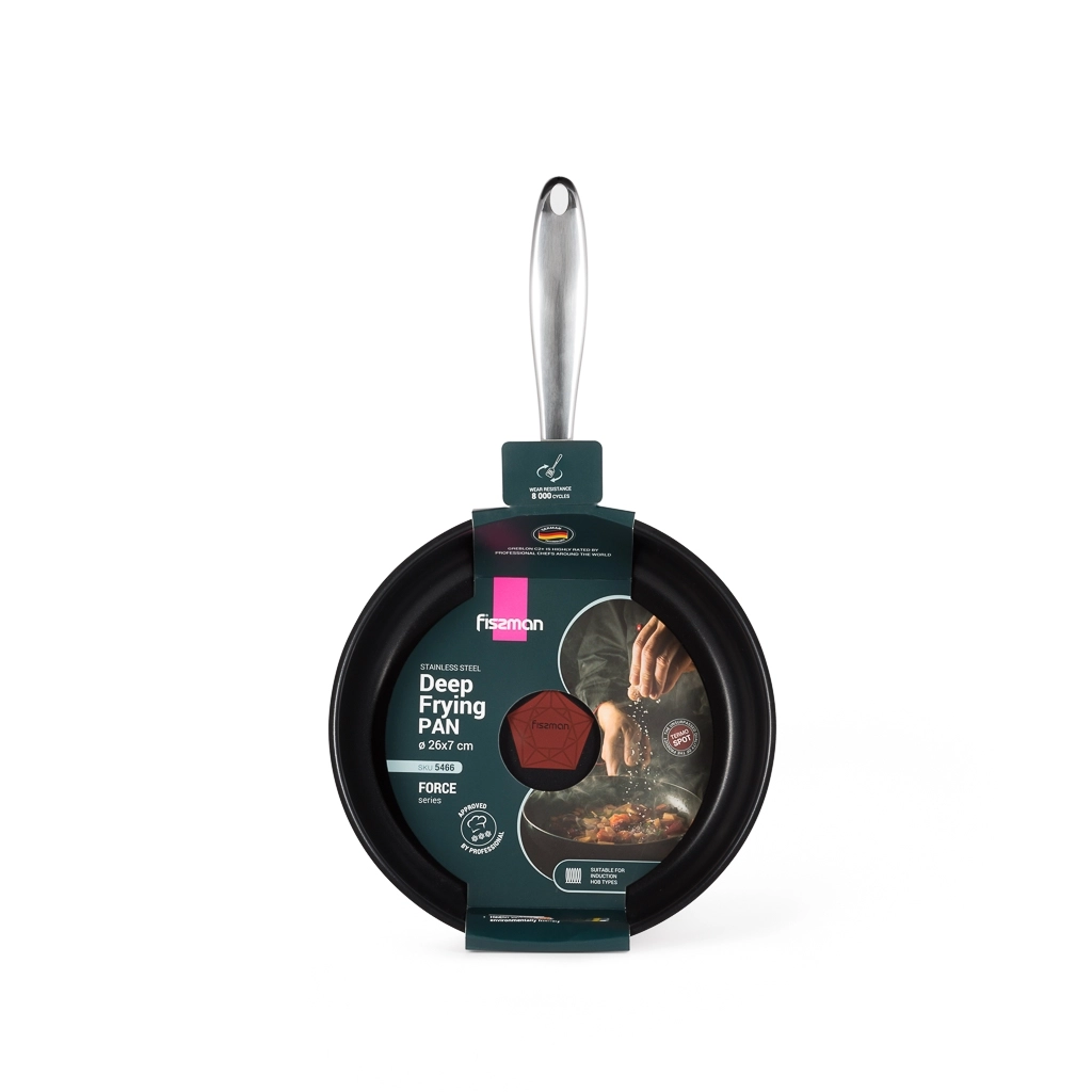 Компания FISSMAN постоянно совершенствует ассортимент своей продукции, стремясь облегчить жизнь современным поварам. Сковороды серии FORCE – новое достижение производителя. Антипригарное покрытие Greblon С2+ , фирменный TermoSpot внутри изделий свидетельствует о непревзойденном качестве товара, многослойное капсульное дно — все это делает сковороды серии FORCE незаменимым помощником на вашей кухни, убедитесь в этом сами! https://fissman.ru/catalog/skovorody/skovorody-iz-nerzhaveyushchey-stali-fissman/ckovorody-stalnye-s-diametrom-kryshki-26-sm/skovoroda-iz-nerzhaveyushchey-stali-s-indikatorom-nagreva-26-sm-force-glubokaya/