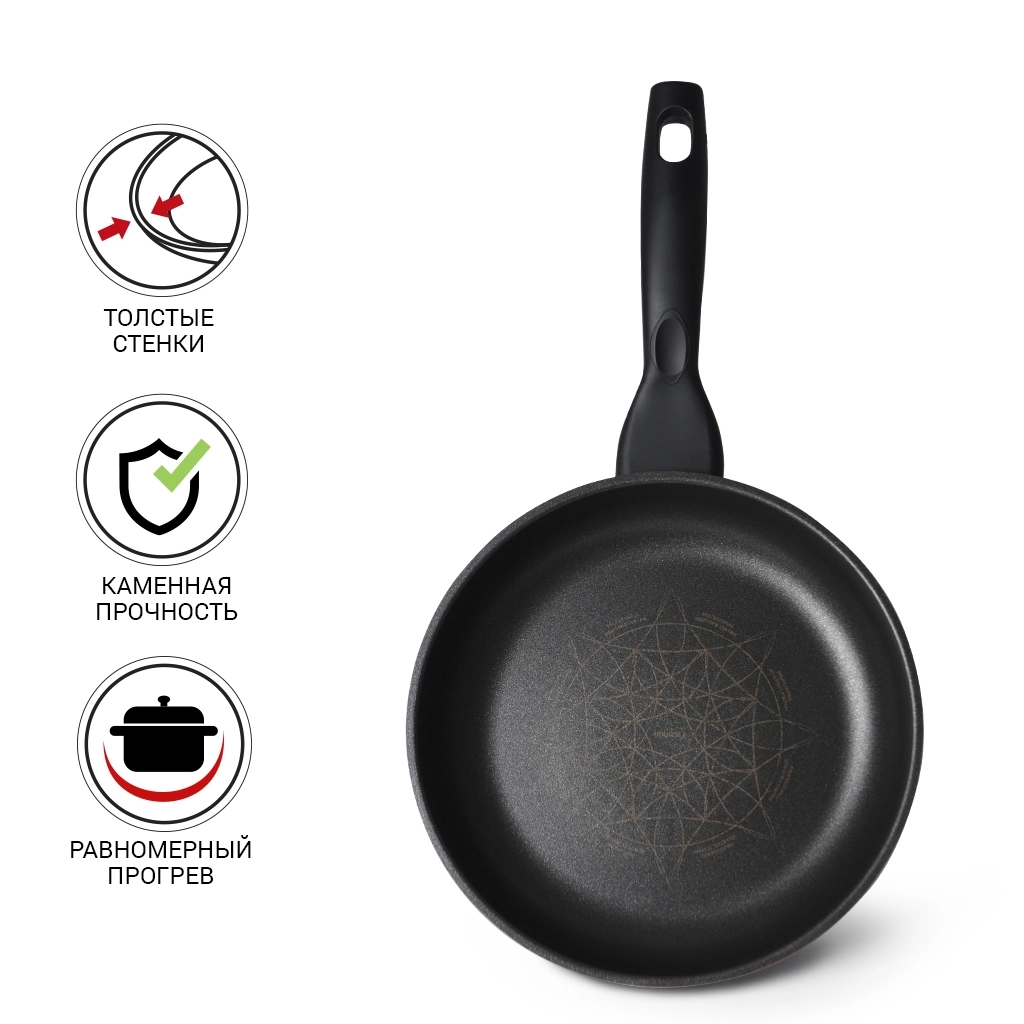 • Толстые стенки и широкий борт способствует равномерному распределению тепла и обеспечивает высочайшую прочность изделий.