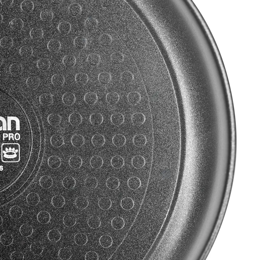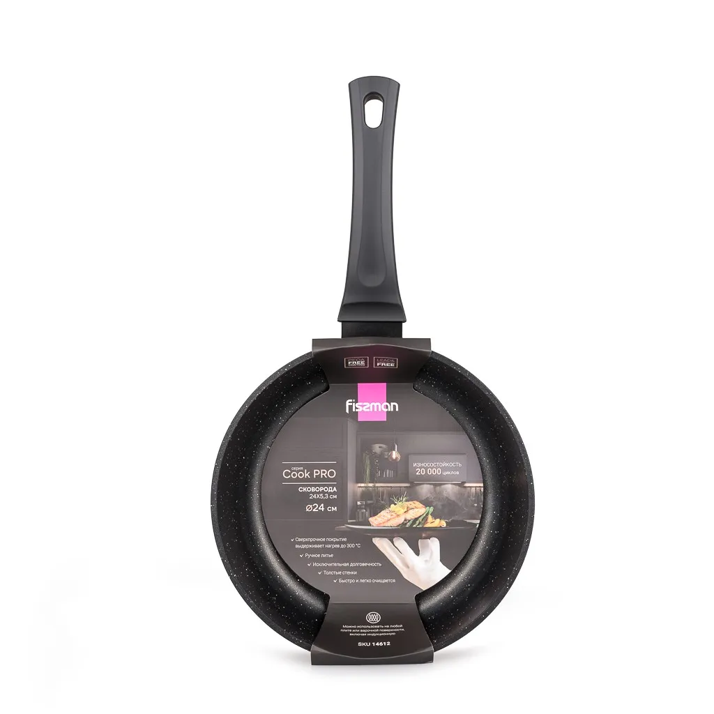 Одно из ключевых преимуществ Cook Pro — способность выдерживать нагрев до 300 градусов, что позволяет использовать сковороду на газовых и электрических плитах. Толстый и тяжёлый литой алюминий обеспечивает прочность, устойчивость к деформации и помогает сохранять тепло внутри сковороды.