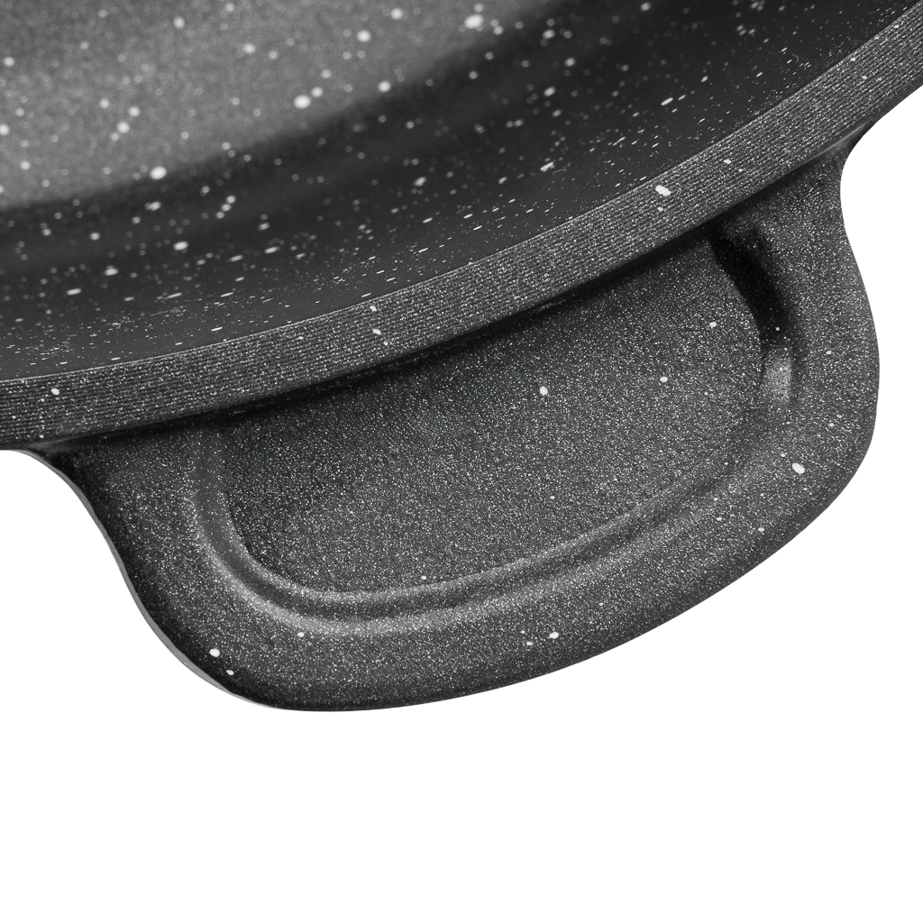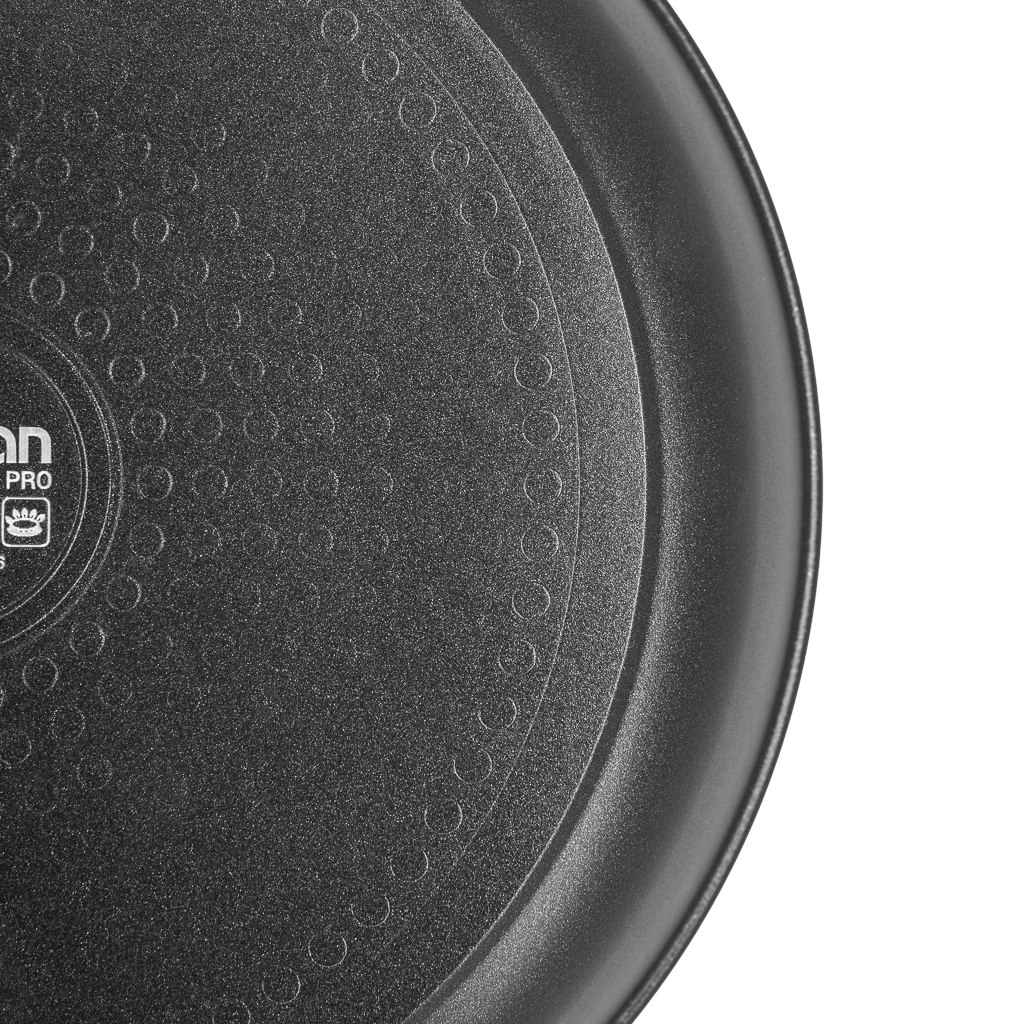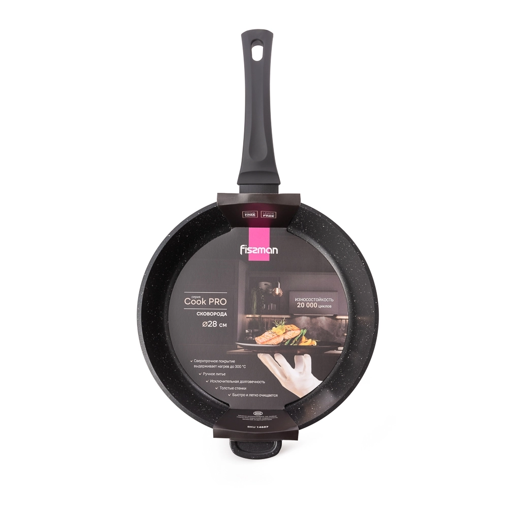 Одно из ключевых преимуществ Cook Pro — способность выдерживать нагрев до 300 градусов, что позволяет использовать сковороду на газовых и электрических плитах. Толстый и тяжёлый литой алюминий обеспечивает прочность, устойчивость к деформации и помогает сохранять тепло внутри сковороды.
