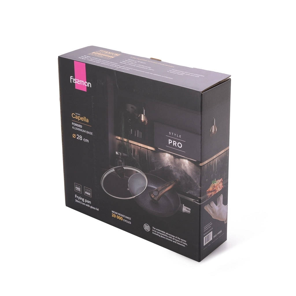 Антипригарная сковорода CAPELLA диаметром 28 см - это сочетание прочности, удобства и современного дизайна. Она создана для тех, кто ценит качество и любит готовить дома блюда ресторанного уровня. Благодаря съёмной ручке её можно использовать не только на плите, но и в духовке, а хранение становится максимально удобным.