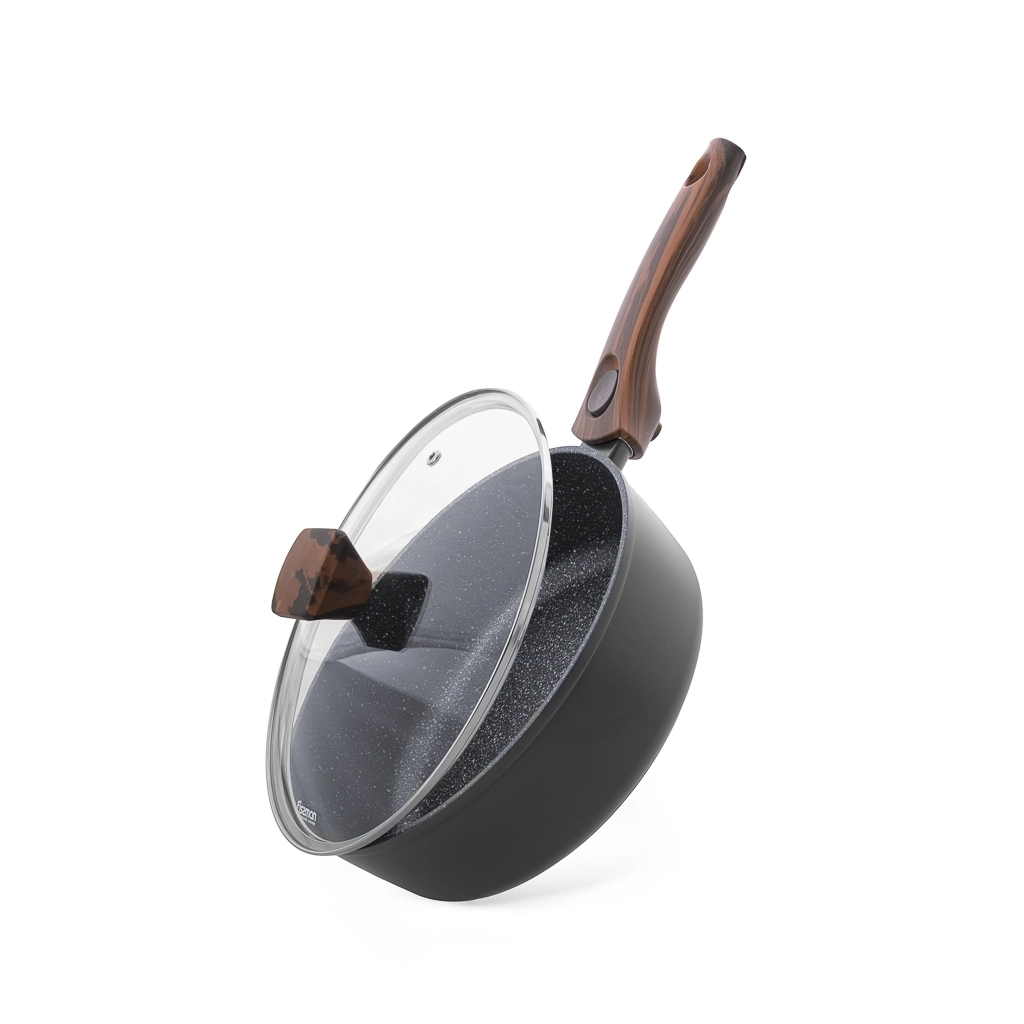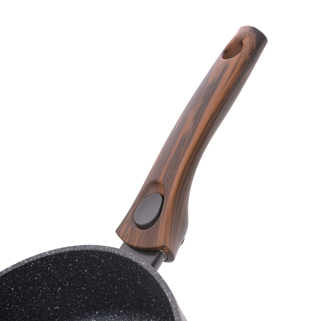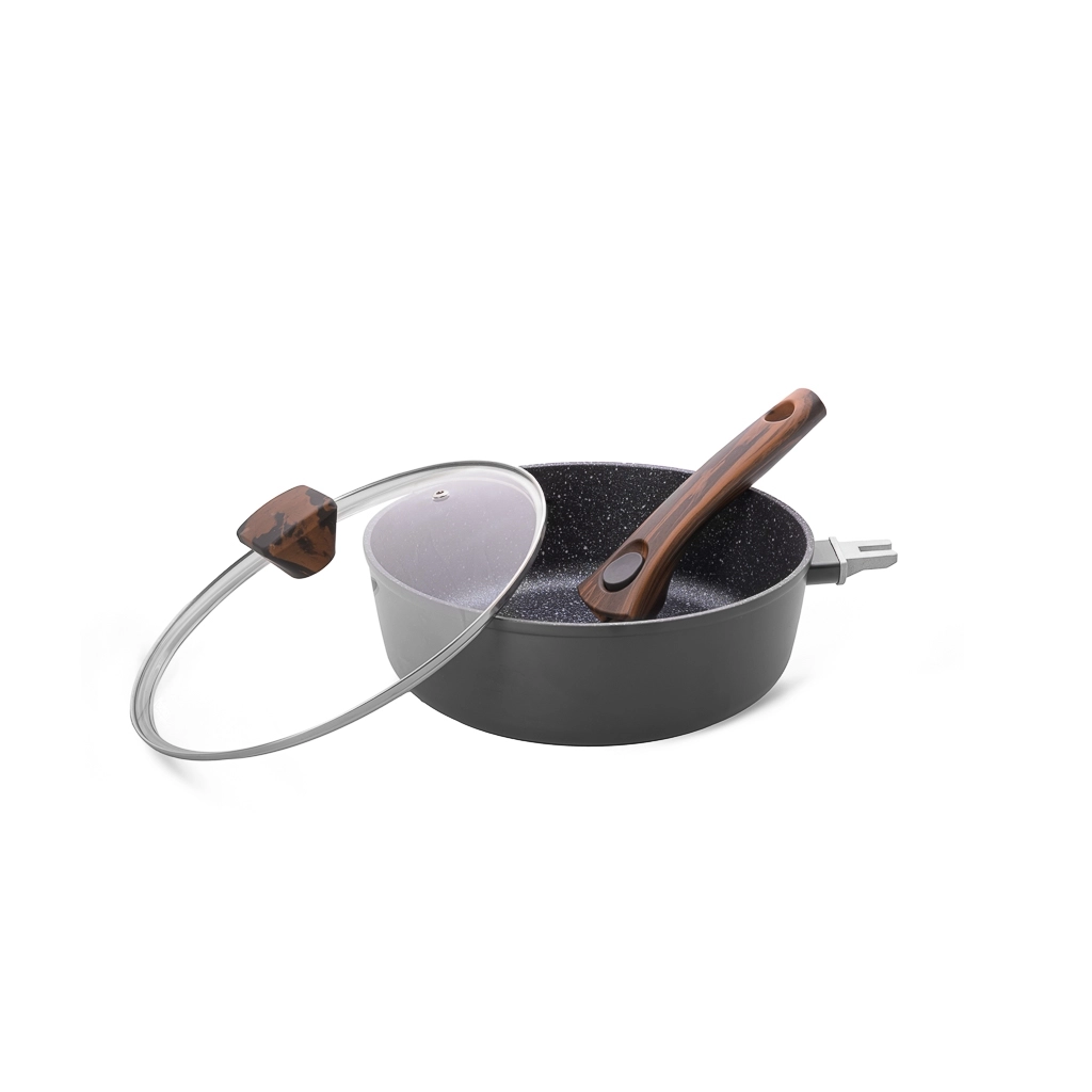 Антипригарная сковорода CAPELLA 24 см со съёмной ручкой – это профессиональный инструмент для домашней кухни, который объединяет функциональность, стиль и долговечность. Она создана для тех, кто хочет готовить с комфортом и уверенностью в результате. Корпус из литого алюминия обеспечивает быстрый нагрев и равномерное распределение тепла, а современное антипригарное покрытие позволяет готовить полезные блюда с минимальным количеством масла.