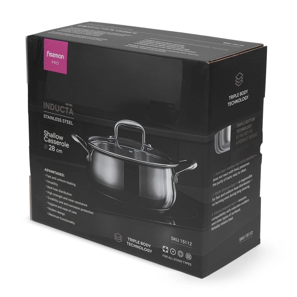 Стальной сотейник с крышкой 28 см / 7,3 л Inducta