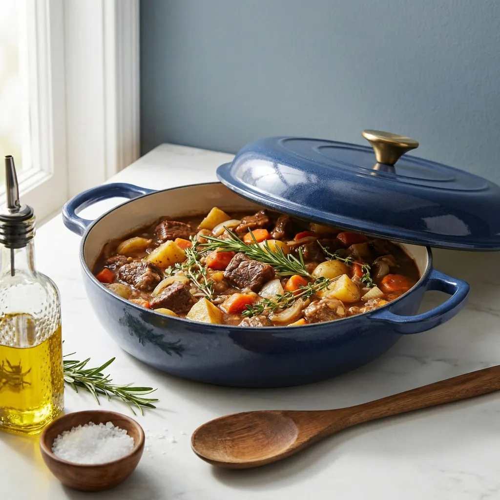 - Прочное фарфоровое покрытие: кастрюля изготовлена из толстого чугуна с гладкой эмалированной отделкой, что делает её устойчивой к растрескиванию, сколам и пригоранию.