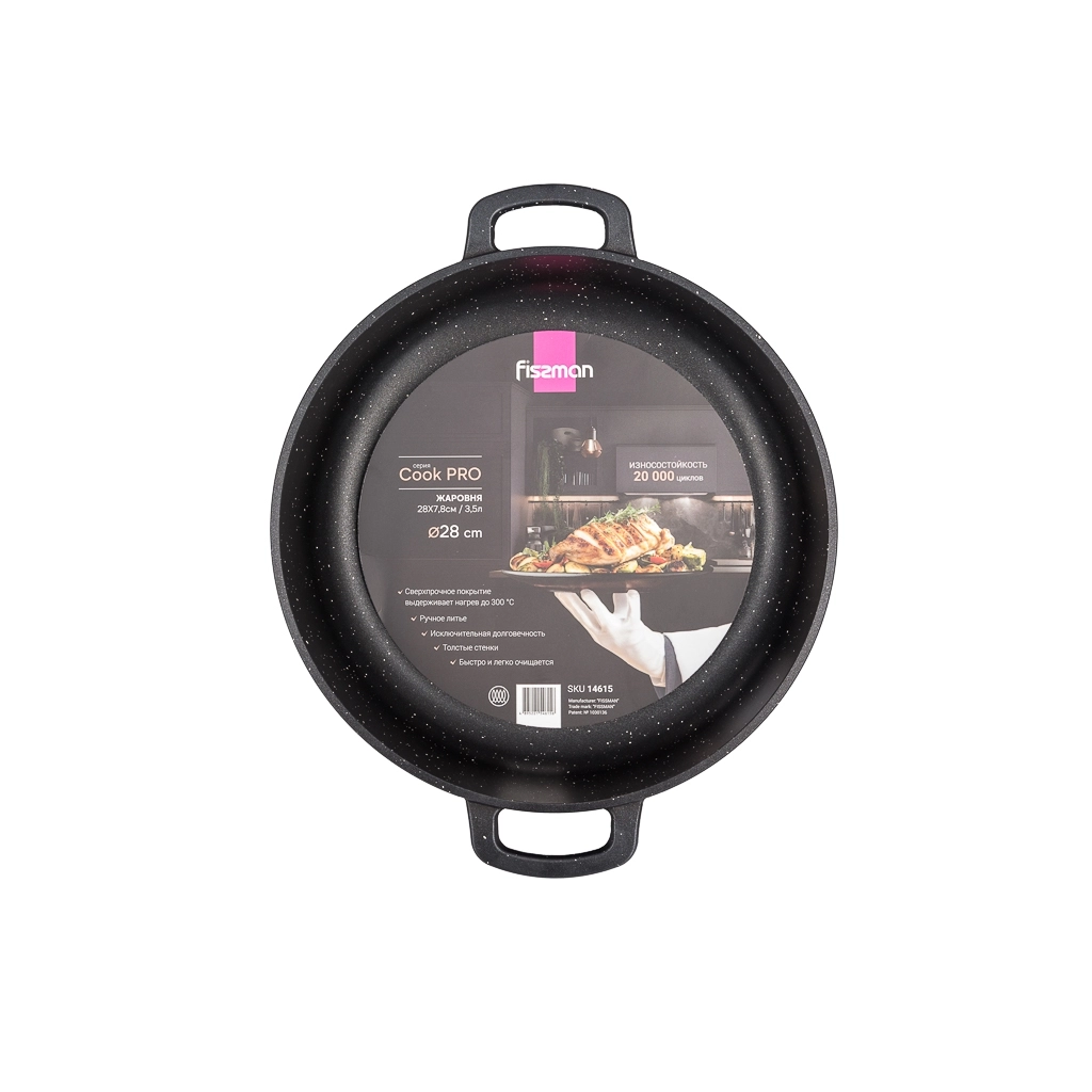 Жаровня Cook Pro — идеальное решение для вашей кухни! Она сделана из литого алюминия, который обеспечивает равномерное распределение тепла и быстрое приготовление пищи. Высококачественное антипригарное покрытие с высокой износостойкостью (20 000 циклов) гарантирует долговечность и надёжность.