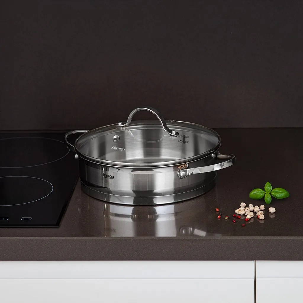 Компания FISSMAN ценит своих покупателей и относится к качеству своей продукции с особым вниманием. Посуда серии FABIANA сделана из самой безопасной высококачественной нержавеющей стали марки 18/10 (INOX304), обладает коррозийной стойкостью, очень легка в уходе. Многослойное капсульное дно обеспечивает равномерный нагрев и распределение тепла благодаря алюминиевой прослойке, раскрывая вкусовые качества блюда и сохраняя все полезные свойства продуктов, а индукционный слой делает посуду универсальной для всех типов плит. https://fissman.ru/catalog/skovorody/soteyniki/soteyniki-iz-nerzhaveyushchey-stali/soteynik-iz-nerzhaveyushchey-stali-24-sm-2-8-l-fabiana/