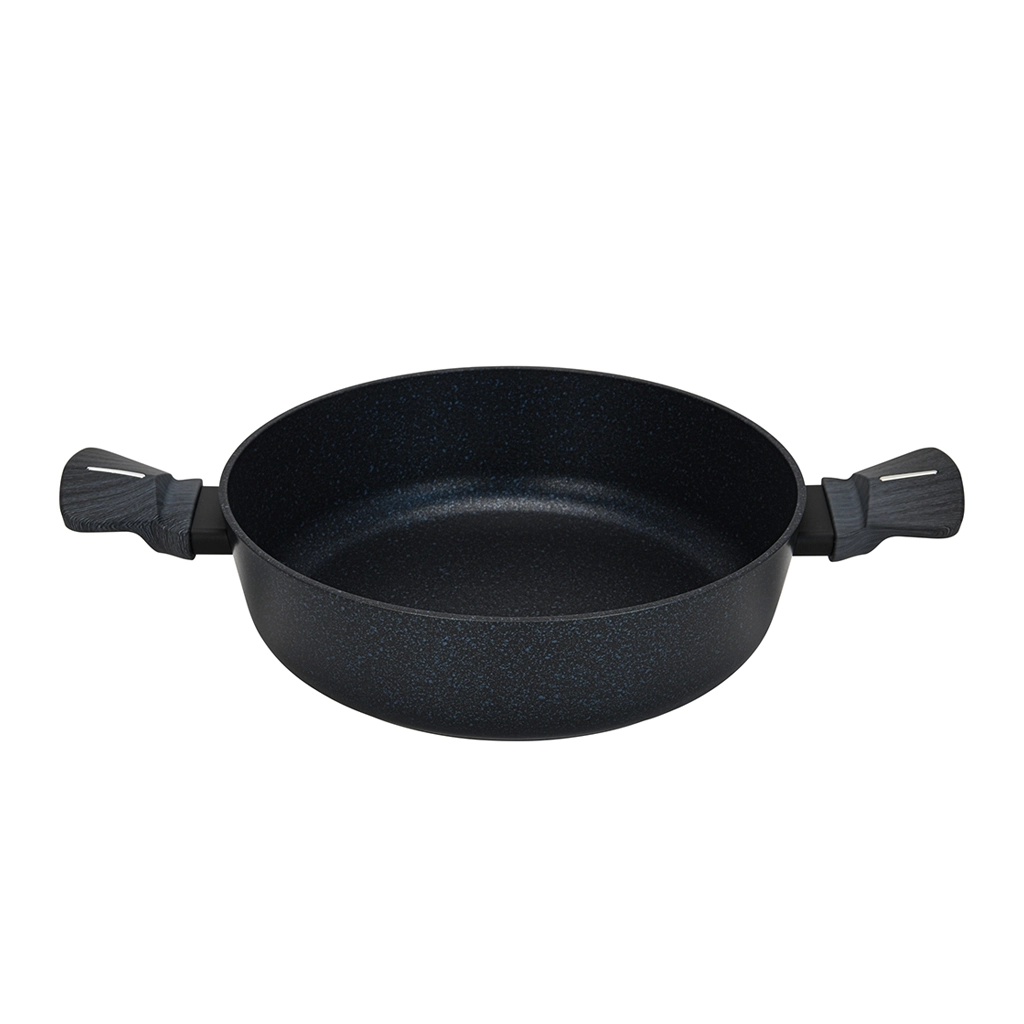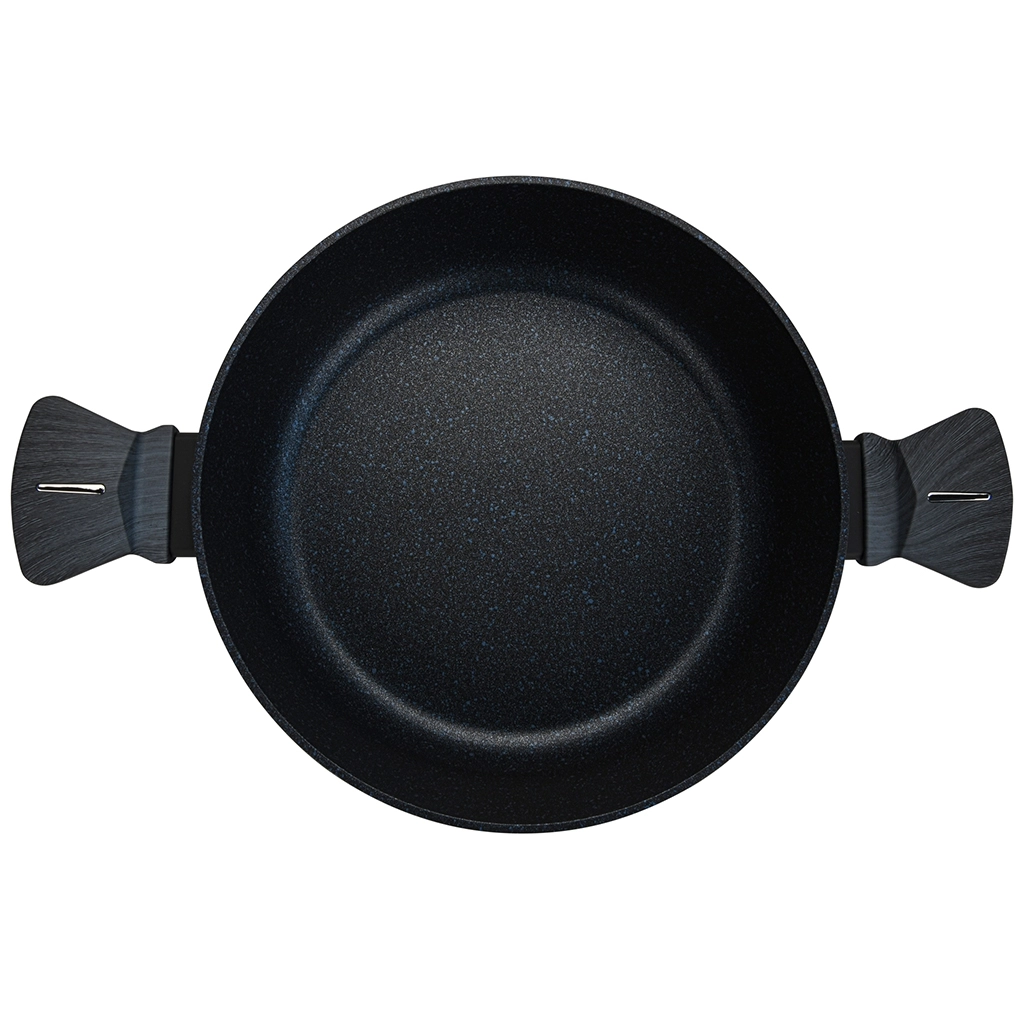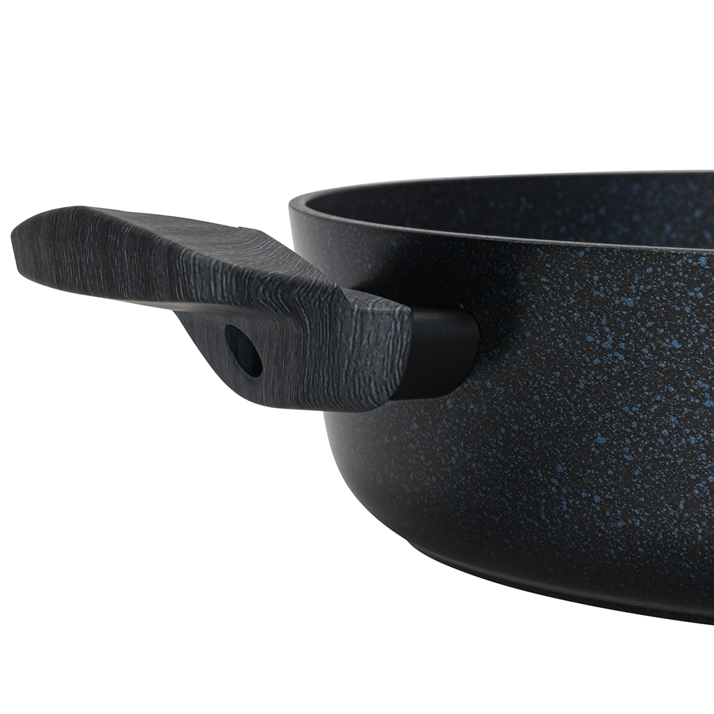 • Поверхность покрытия гладкая, с синими и серебряными вкраплениями. Посуда эффектно смотрится и способна стать украшением любой кухни.