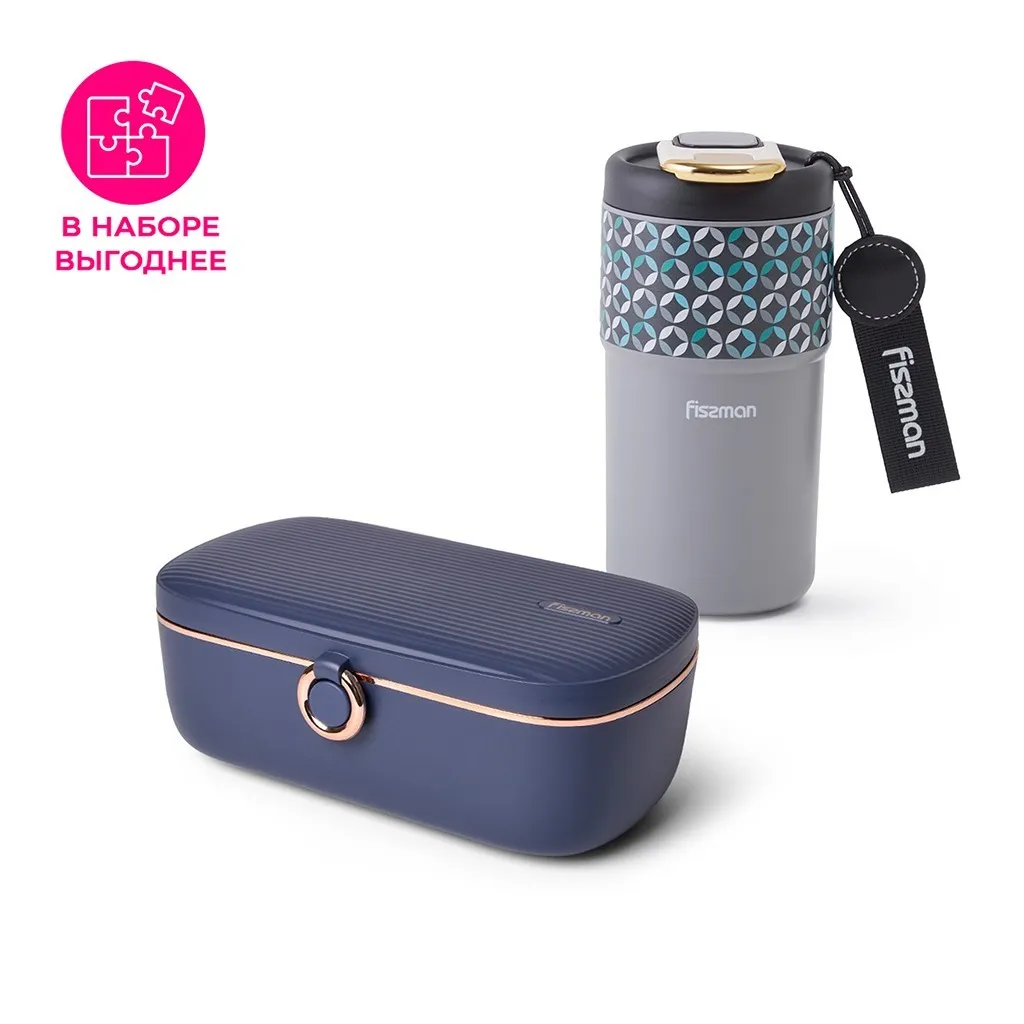 Ланч-бокс с подогревом 900 мл + Термокружка 410 мл с темордатчиком