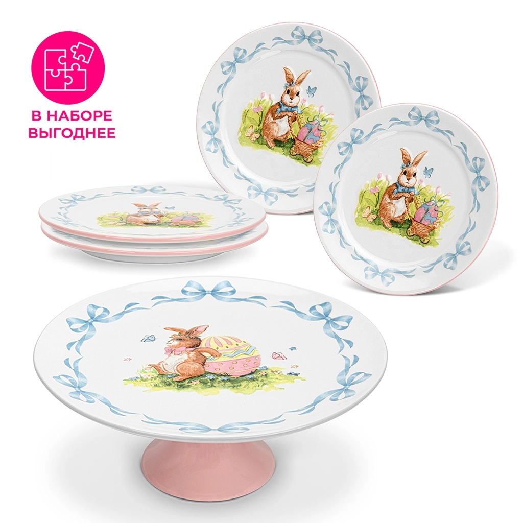 для торта 27 см Easter арт. 0443 2) Десертная тарелка 15 см / 4 шт (доломит) Easter арт. 0431